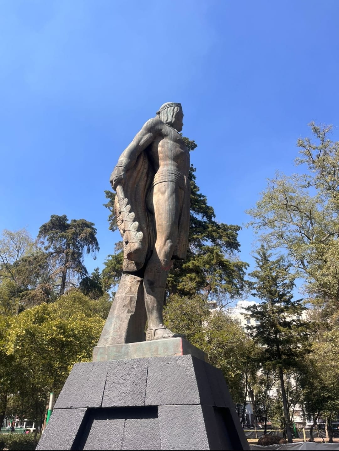 La fotografía muestra una escultura de Cuauhtémoc que, pese a su fuerza simbólica, presenta pintura y desgaste en su superficie. Estas marcas funcionan como una forma de contaminación urbana, reflejo del mismo descuido que daña ríos, suelos y aire. El contraste entre el monumento histórico y el deterioro que lo afecta invita a pensar en cómo nuestras acciones impactan no solo a la naturaleza, sino también a la memoria cultural. Así, la imagen nos cuestiona: ¿podemos proteger nuestra tierra si ni siquiera cuidamos los símbolos que representan su defensa?